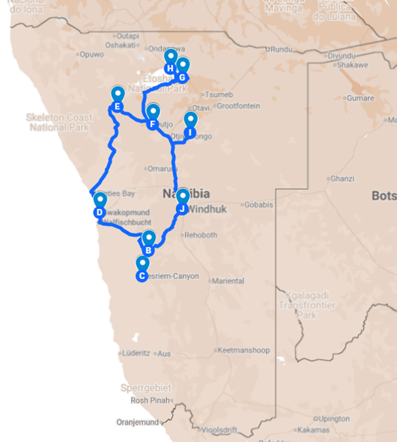 Auf dieser komplett organisierten Reise erwarten dich Safari-Pirschfahrten im Etosha-Nationalpark, 4×4-Dünenabenteuer in Walvis Bay, Delfin- und Robbenbeobachtung, sowie kulturelle Begegnungen mit den Koi-San in der Kalahari.